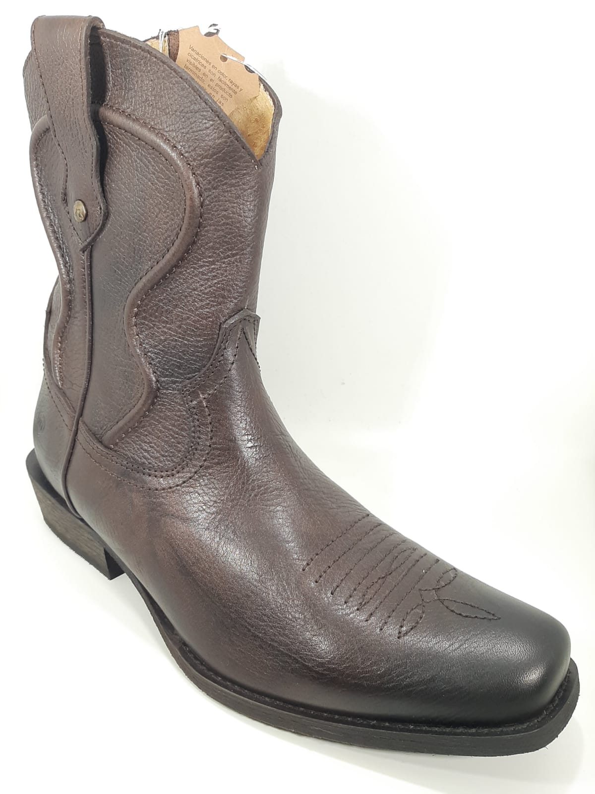 Botines para caballero, color marrón obscuro, cierre al costado del tobillo, piel genuina.